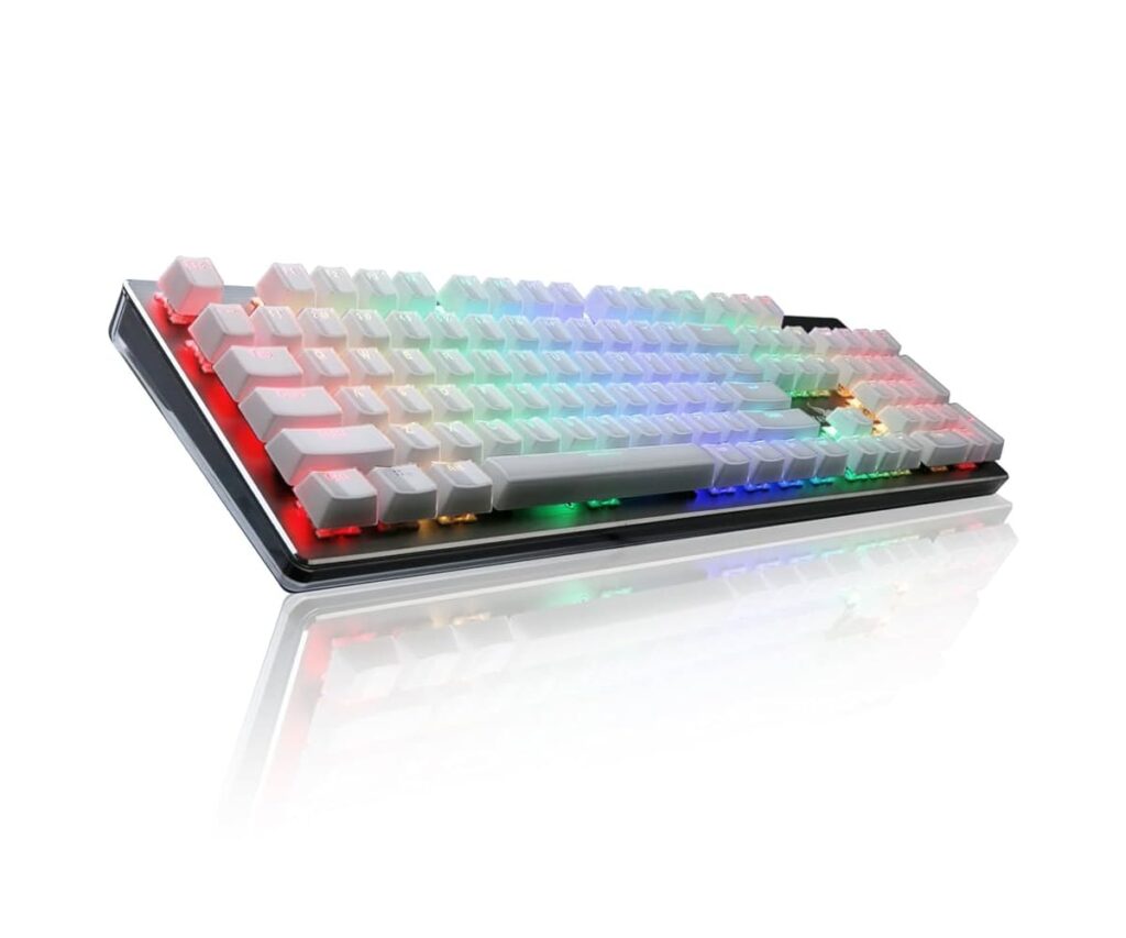 This keyboard features a vibrant RGB backlight and tactile blue switches, making it perfect for gamers who prefer a clicky, responsive feel.